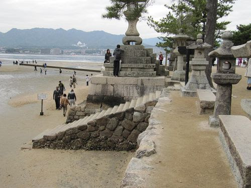 出發前看過了嚴島潮汐表,今日退潮時間是15:05,最底點0.5米,還有少少時間先遊一下嚴島神社,然後才落泥灘看鳥居;嚴島神社被世界文化遺產登錄在冊的神社,有1,400年以上的歷史。嚴島神社朱漆的神殿,和藍藍的大海及彌山翠綠的原始森林,合成美麗的組合。