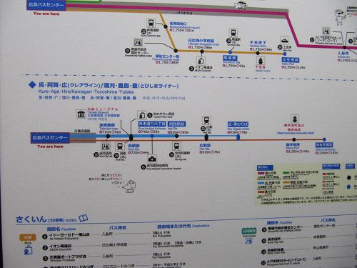 今日七時多起床,梳洗後到大堂食過早餐,執好行裝就出發,到廣電的場町站乘電車到紙屋町西站,然後到廣島巴士中心 (広島バスセンター) 乘広電電鈇クレアライン線高速巴士到吳市。