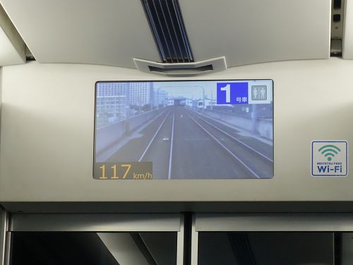 車頭的顯示牌,特急 u-sky最快車速 117 Km