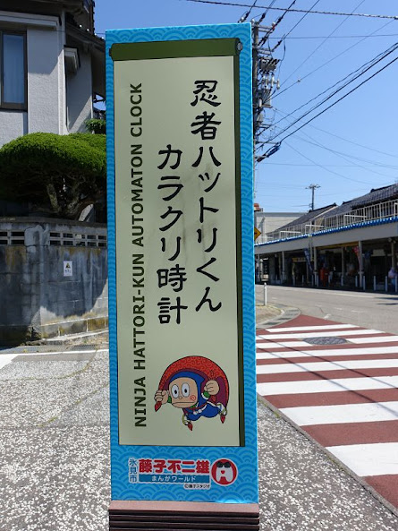 09:45到了商店街,還有十多分鐘忍者小靈精機關時鐘 (忍者ハットリくんカラクリ時計)就開始,所以先在街口附近行下影下相,09:55返回這裡等睇忍者小靈精機關時鐘表演,之後就繼續遊潮風商店街和光禪寺,當然還會參觀冰見市潮風畫廊。